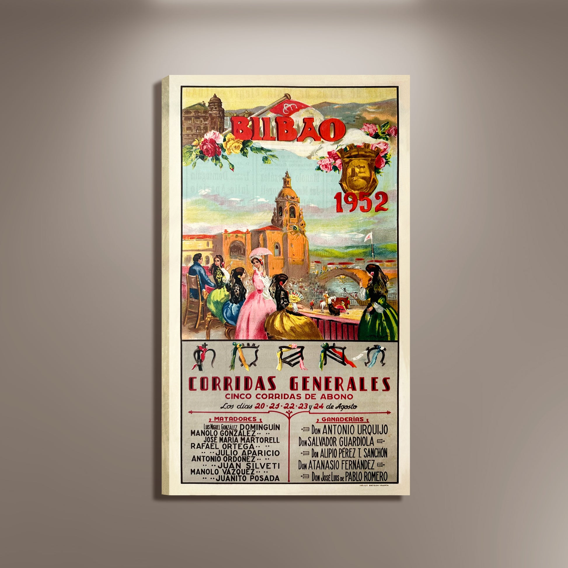 Bullfighting Bilbao 1952 Spanish Poster Print Framed Canvas, Bull Poster, Spain Poster, Tourism Poster, Vintage Poster