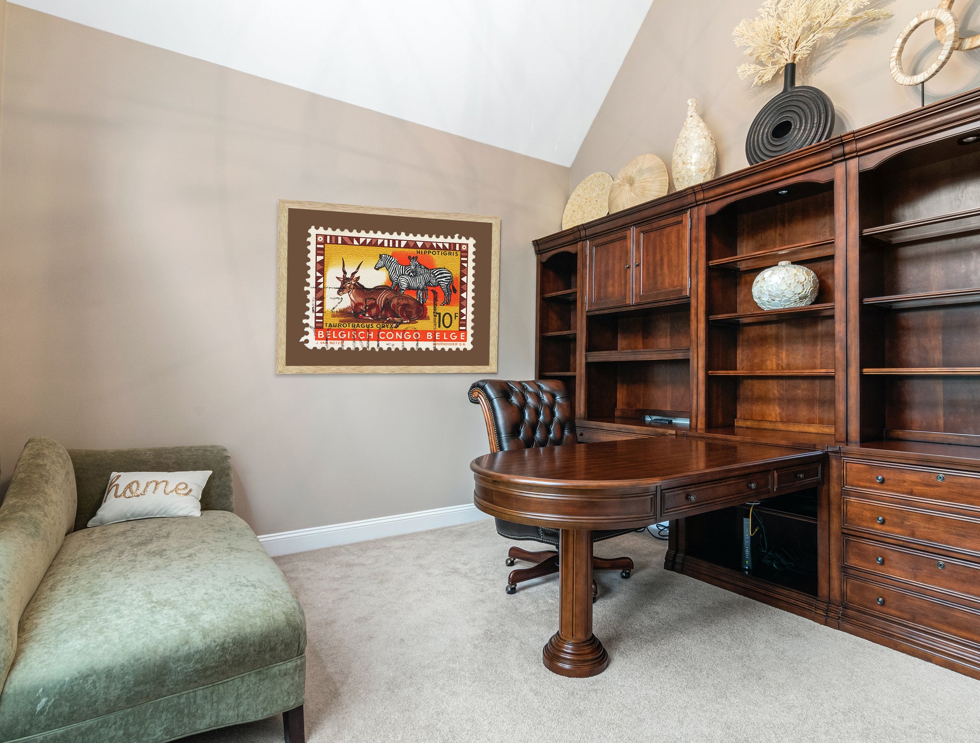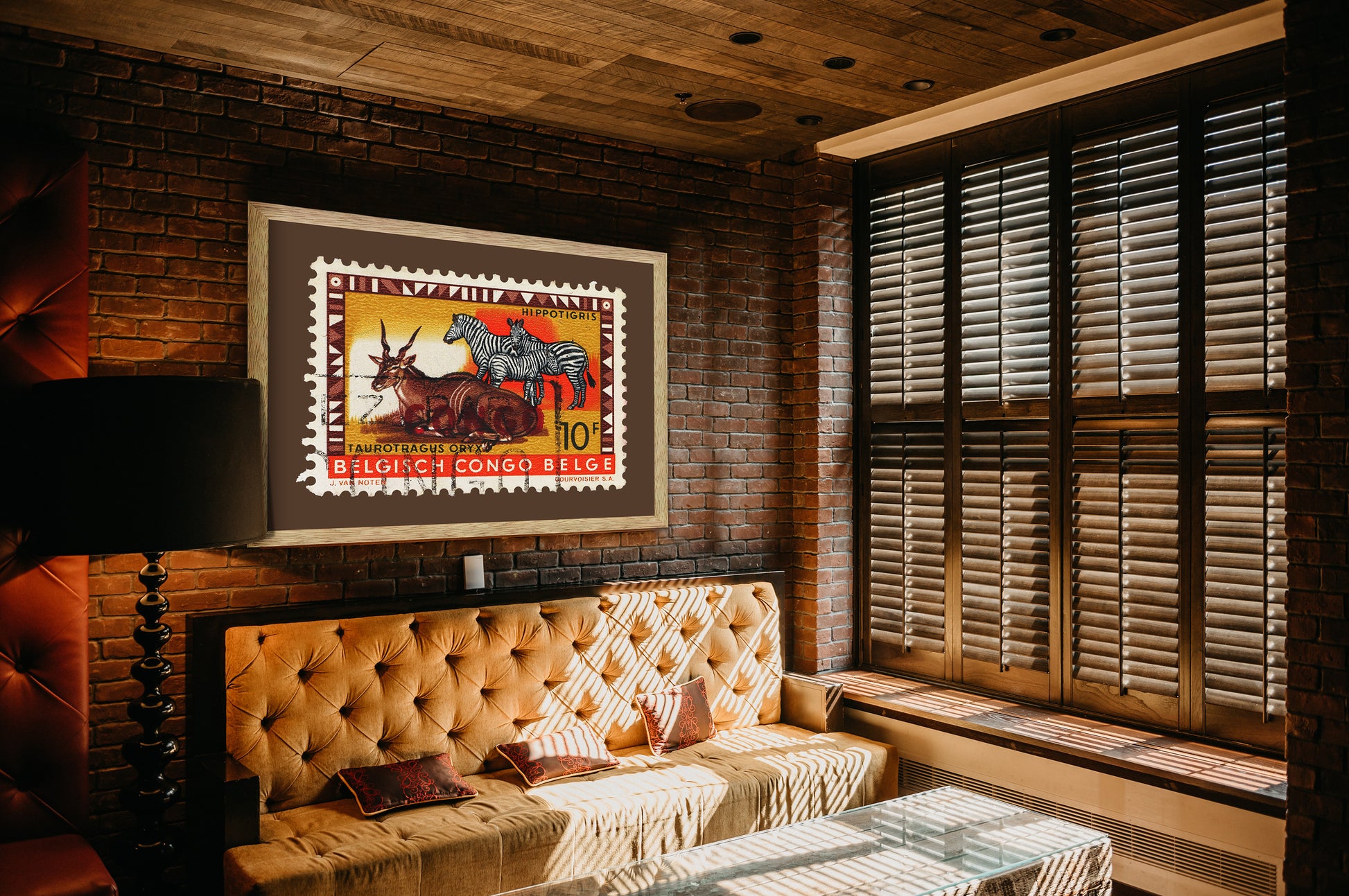 Belgisch Congo Belge Stamp, Vintage African Stamp Art Postage Framed Canvas Print, African Hippotigris, African Zebra, Travel Poster Prints